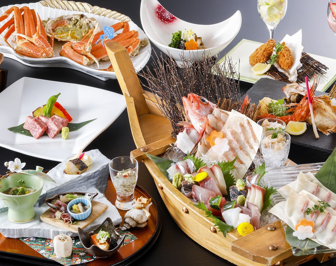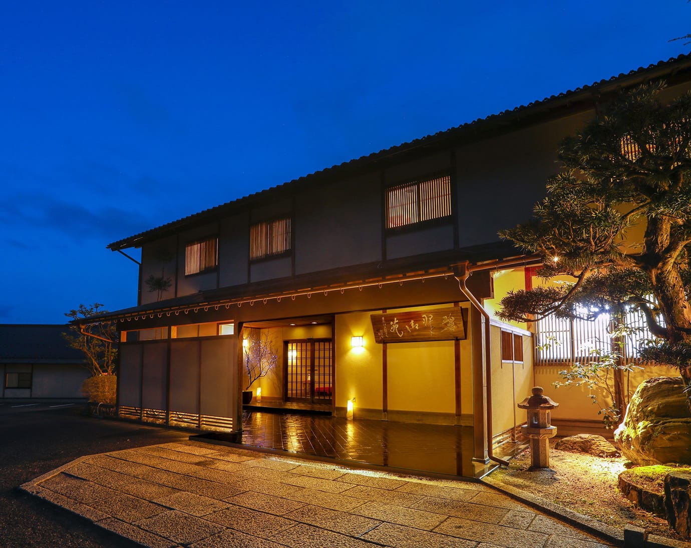 京都丹後の奥座敷、山陰海岸国立公園に指定された風光明媚な久美浜湾の畔に佇む純和風旅館。和風建築の粋を凝らした数寄屋造りの佇まい、一万坪の敷地にわずか十四室。自家源泉の天然温泉は湯量豊富で良泉質。山々に囲まれた天然のミネラル分が豊富に流れ込む久美浜湾と日本海の荒波に育まれた良質の海の幸を中心に、食材豊かな丹後の素材を生かした旬の料理をお楽しみいただけます。