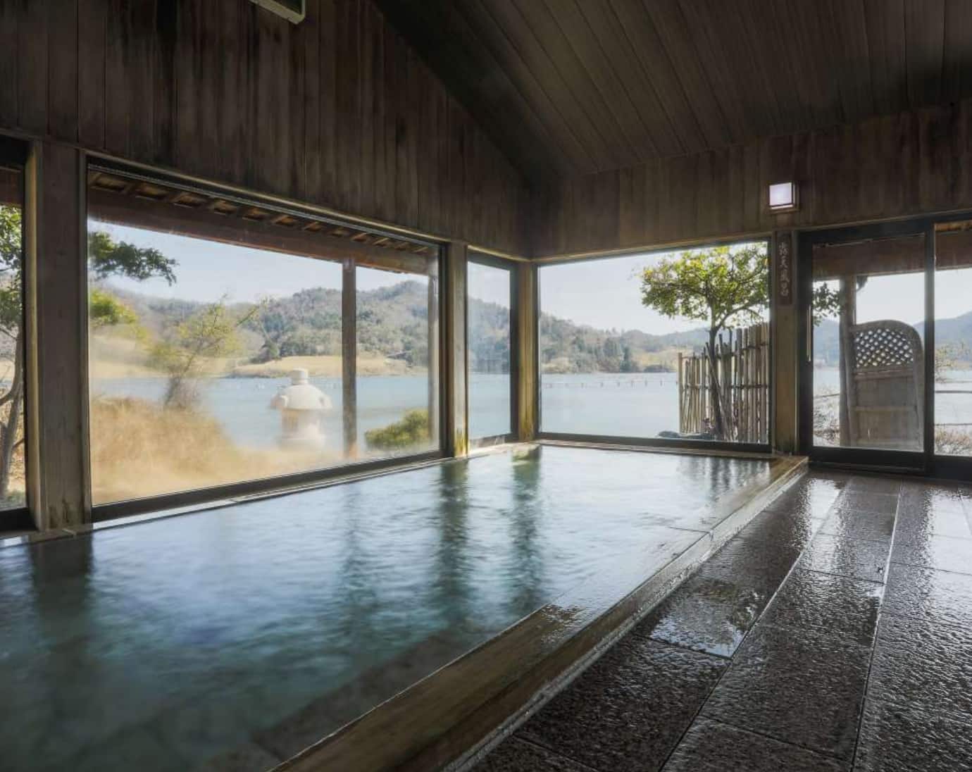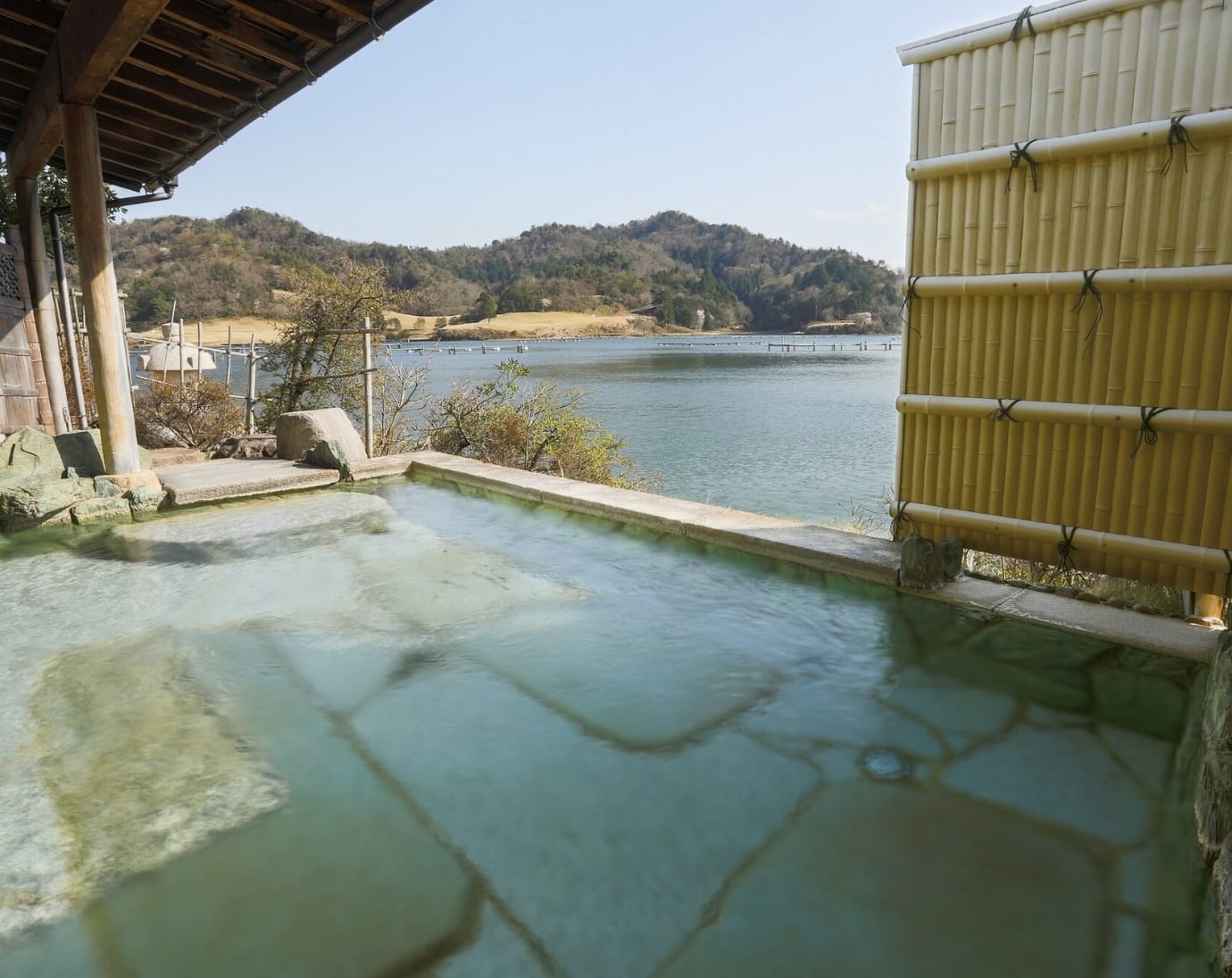 京都北部の海に面した京丹後市には人気の温泉施設が点在、海と山の景観を楽しめる温泉地です。
