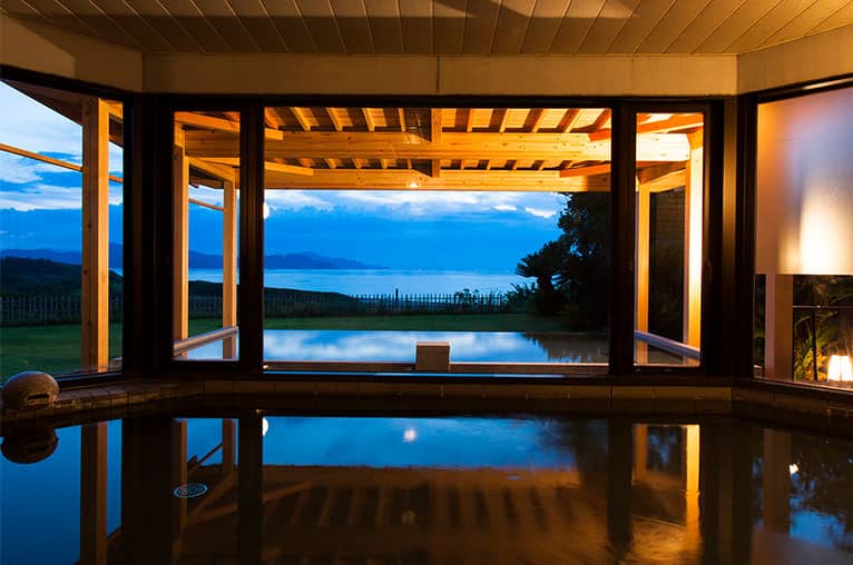 海と空、湯がひとつになるインフィニティ大浴場露天風呂で、絶景と美人湯に癒されてください。