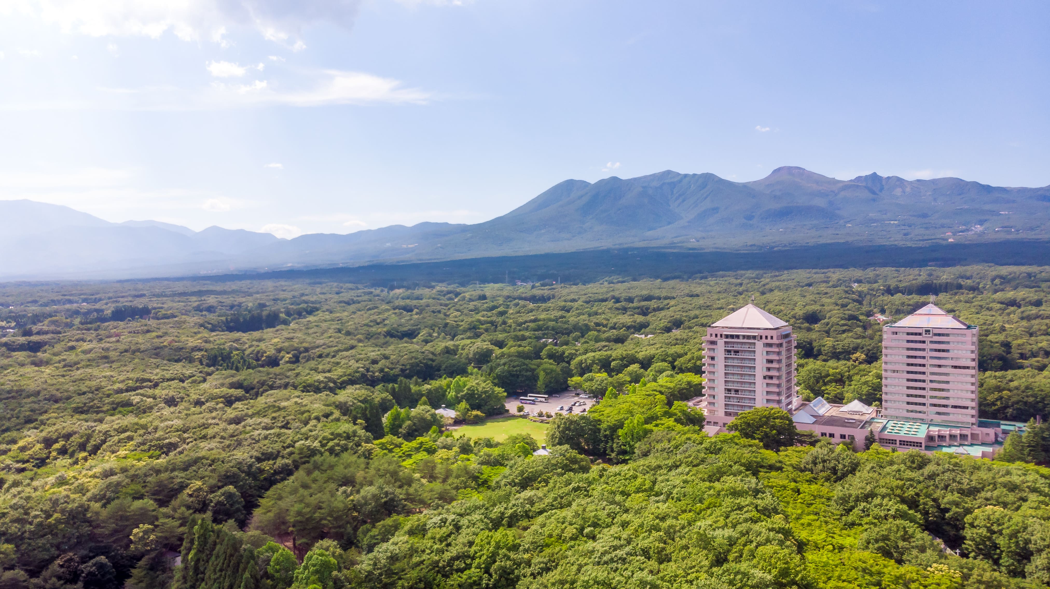 雄大な那須連山がそびえ、その麓に温泉地や旅館・ホテルがあるリゾート地。