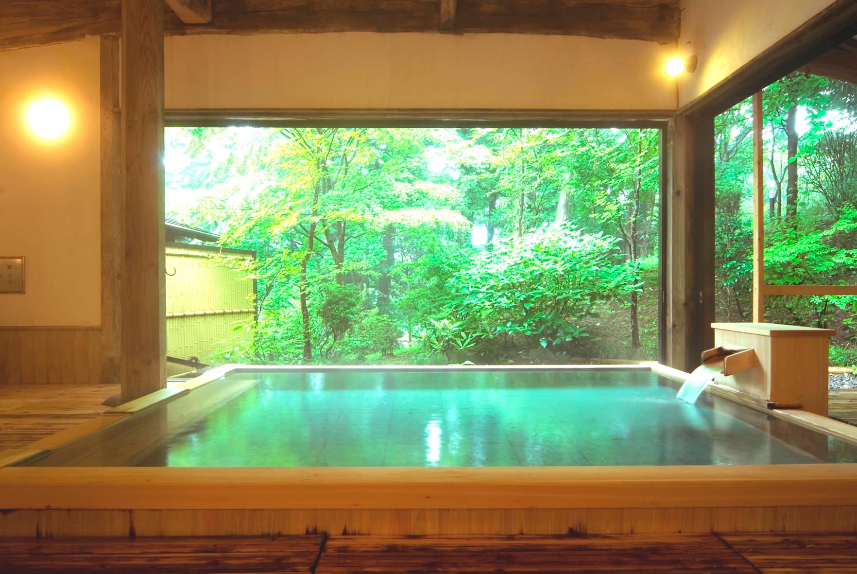 輪王寺が定めた「湯守」として、代々250年余り受け継がれてきた「湯元板屋」。お湯につかると体が見えなくなる位の濃い乳白色の硫黄の温泉が特徴です。効能豊かなお湯はとてもやわらかで、女性には嬉しい美肌効果も。こだわりの名湯をゆっくりご堪能ください。