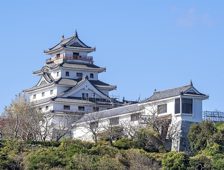 豊臣秀吉の家臣・寺沢広高によって築城され、別名「舞鶴城」と呼ばれています。昭和41年に建てられた天守閣からは玄海灘や虹の松原、唐津の風景を見ることができます。