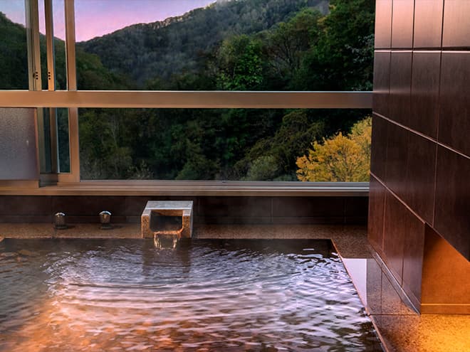 館内にはそれぞれ、特徴のある3つの湯が楽しめます。展望を楽しむのもよし、峡谷のせせらぎを聞くのもよし。エキゾチックな雰囲気のチニタの湯もあります。
