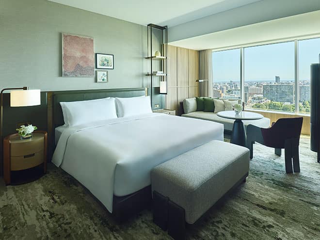 自然に囲まれた中島公園エリアの落ち着いたロケーション。42平方メートルの広々とした客室は温かみのあるデザインと北海道の自然を感じるカラーコーディネーションが、心地よい滞在を演出します。