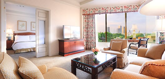 緑豊かな庭園に囲まれて佇む都会のオアシス。清冽な空気の中ゆっくりと朝の庭園散策もおすすめです。客室はホテル自慢の庭園を望める60平米のプライムエグゼクティブスイート ガーデンビューをご用意。