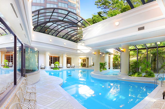 自然光射し込む開閉式の天井を持つ全天候型の温水プールや伊東から直送の温泉やサウナ、フィットネスジムを備えています。