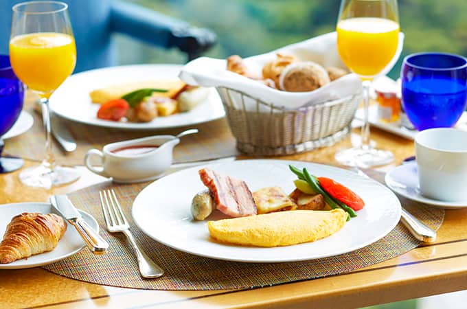 洋食レストランでは季節のフルーツを使用した搾りたてのフレッシュジュースと、卵料理はお好みのスタイルでお召し上がりいただけます。