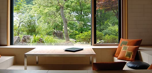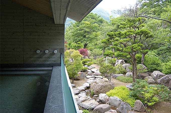 露天風呂からは日本庭園の四季の草花を眺められ、