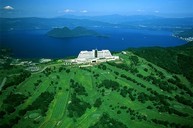 洞爺湖と内裏湾を見下ろす山頂に建っており、