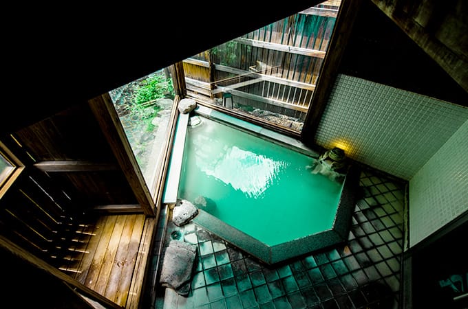創業以来、滾々と湧き続ける自家源泉9つの浴槽に混じり気のないかけ流しによる湯浴みをご堪能ください。
