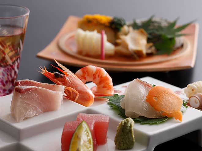 夕食時に鯛のお赤飯をご用意(18歳以上のみ・出発日の3日前までにお客様ご自身でご予約ください。TEL:0858-43-0111)