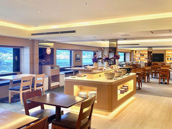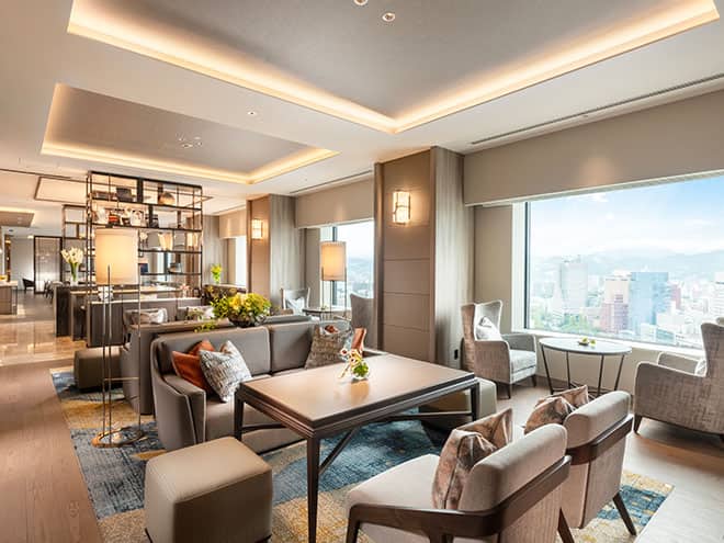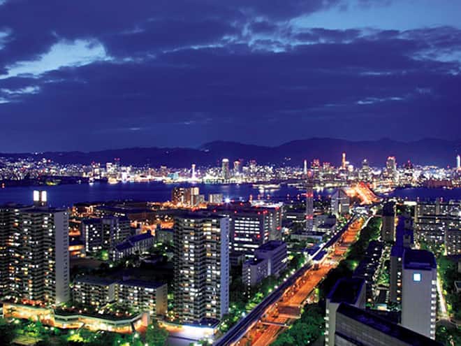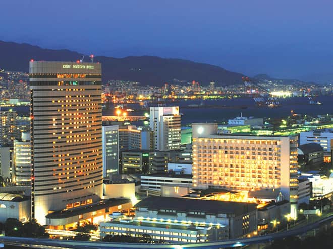 空に手が届きそうなほどの開放感あふれる窓から望む六甲の山々と港に包まれた美しい街並みは、ポートピアホテルだからこそお届けできる贅沢な景色。