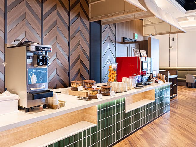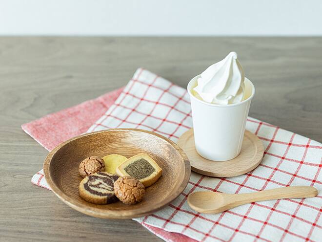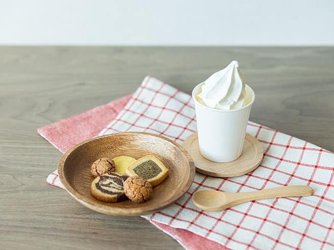 ドリンクとスイーツ、ソフトクリームなどをご用意。
