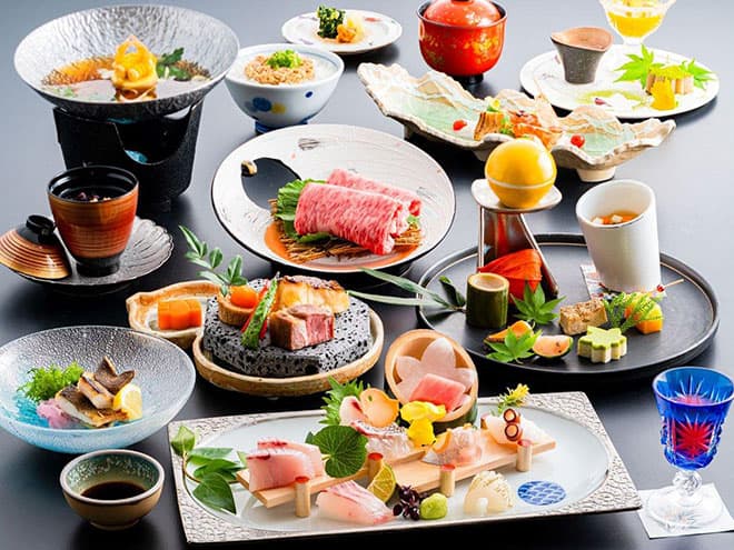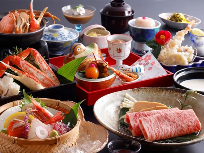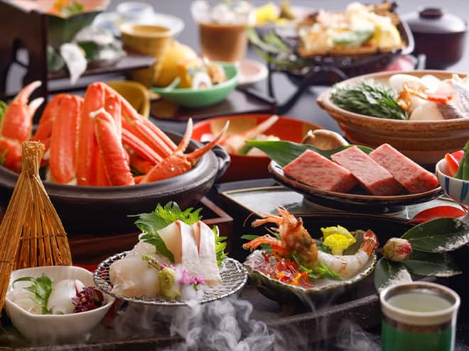 皇族が宿泊し、文人墨客も愛した歴史ある宿。高濃度のラドン含有量を誇るラジウム温泉を、宿自慢の十二の湯処「回遊式大庭園風呂 山の湯」でお楽しみください。四季折々の鳥取の食材を使った料理もご堪能いただけます。
