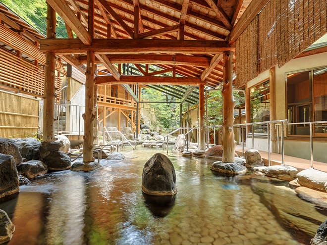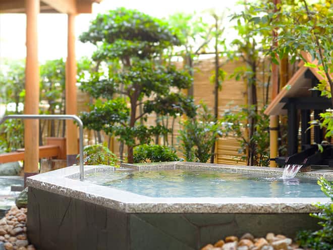 和の情緒ある落ち着いたリゾート空間と桜色を基調とした優しい色合いのロビーが特徴の温泉旅館。広々とした大浴場で、優しいぬくもりに包まれる至福のひとときをお過ごしください。