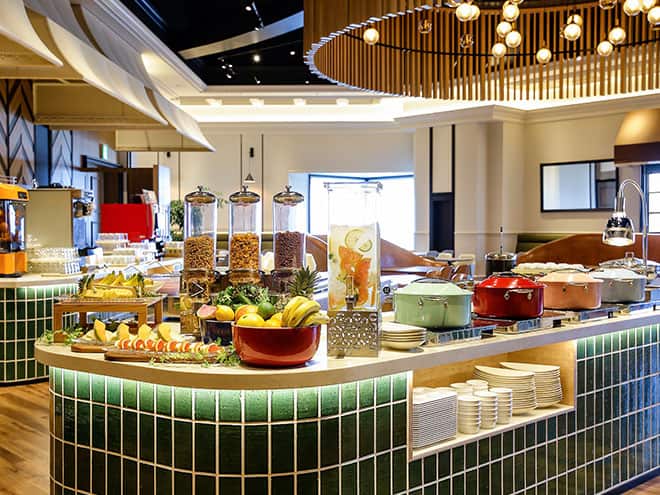 朝食や夕方のカクテル&ライトスナックをお楽しみいただけます。