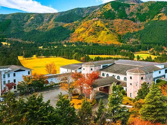 雄大に広がる大自然に抱かれたリゾートホテル。中世ヨーロッパの古城を思わせるホテル外観のクラシカルで落ち着いた雰囲気の中、くつろぎの時間をお過ごしください。