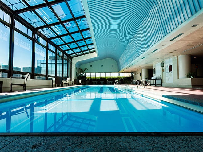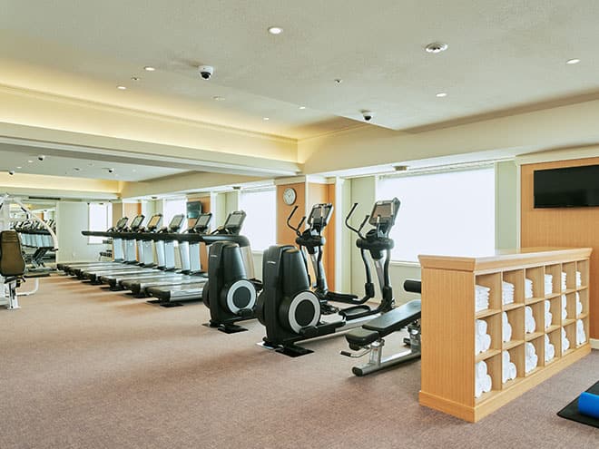 滞在中、29階フィットネスジム、室内温水プール、ジェットバス、ドライサウナ、ミストサウナを利用可能