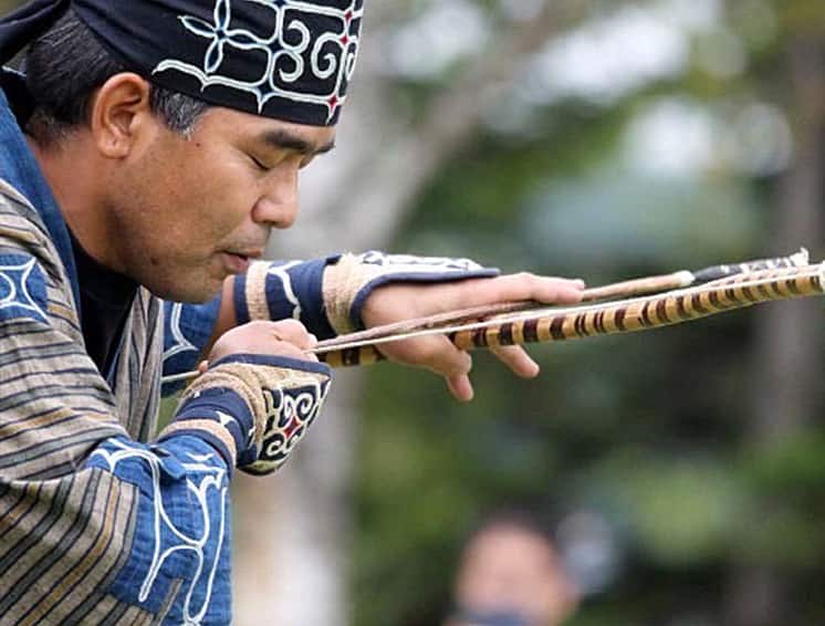 アイヌの方々による演舞の鑑賞、伝統的な口琴(こうきん)楽器であるムックリの体験により、アイヌ文化を学ぶことができます。