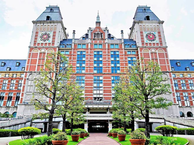 ヨーロピアンリゾートのすべてを、自分の庭としてお愉しみいただけるホテル。アムステルダム中央駅を再現した優雅な外観から、伝統のおもてなしが始まります。くつろぎに満ちた客室、和洋中楽しめる多彩なレストランや、露天風呂を備えた天然温泉もございます。