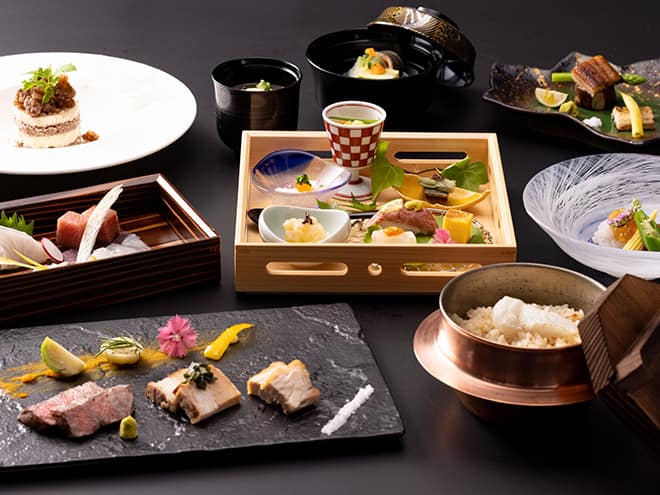 福岡の中心部、中洲川端駅直結の好ロケーション。博多伝統の趣を感じさせる落ち着いたインテリアの客室空間で、上質な時間をお過ごしください。朝食では、ホテルオークラの伝統を継承しながら季節の食材を生かした味をご堪能ください。