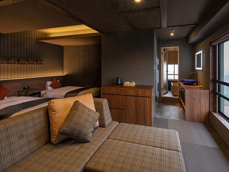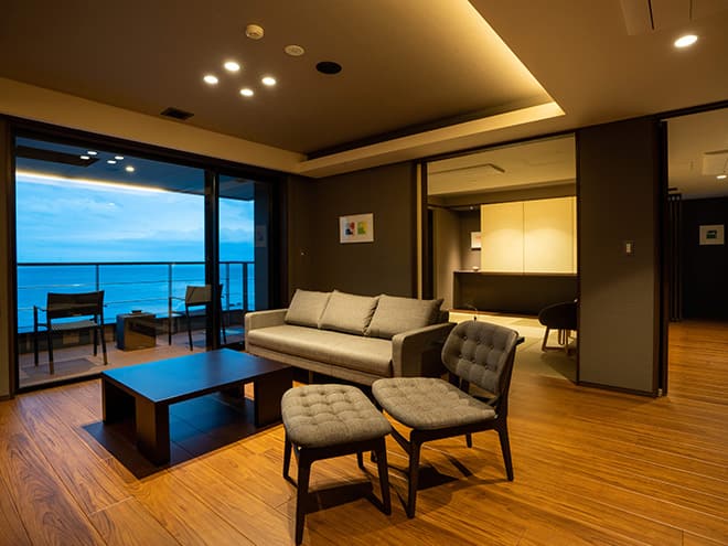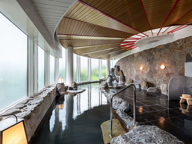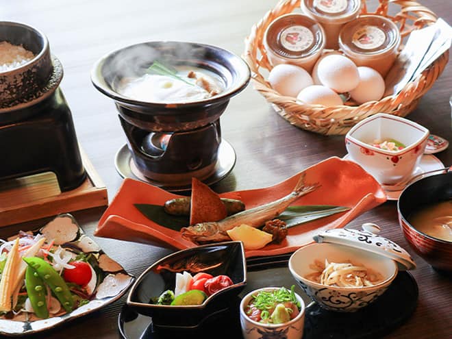2023年春、本館客室がリニューアルを終えモダンな和洋室が誕生!硫黄の香りがする自慢の温泉と自社農園や地域の種どり農家から買い付けた新鮮な野菜やブランド肉を調理して提供する、3つのレストランなどお客様のご滞在を心身共に癒すことができるお宿です。