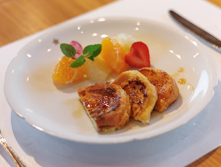 ななつ星で長年お客さまと共に過ごしてきた料理長の旅人への滋味あふれる朝食をお楽しみください。