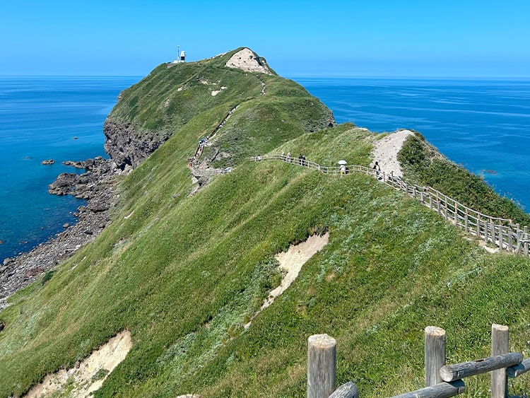神威岬はニセコ積丹小樽海岸国定公園の中にある積丹半島からに突き出した断崖絶壁の岬。両側に日本海の雄大な眺めが広がる遊歩道「チャレンカの小道」を歩いた先は、絶景の積丹ブルーをお楽しみいただけます。