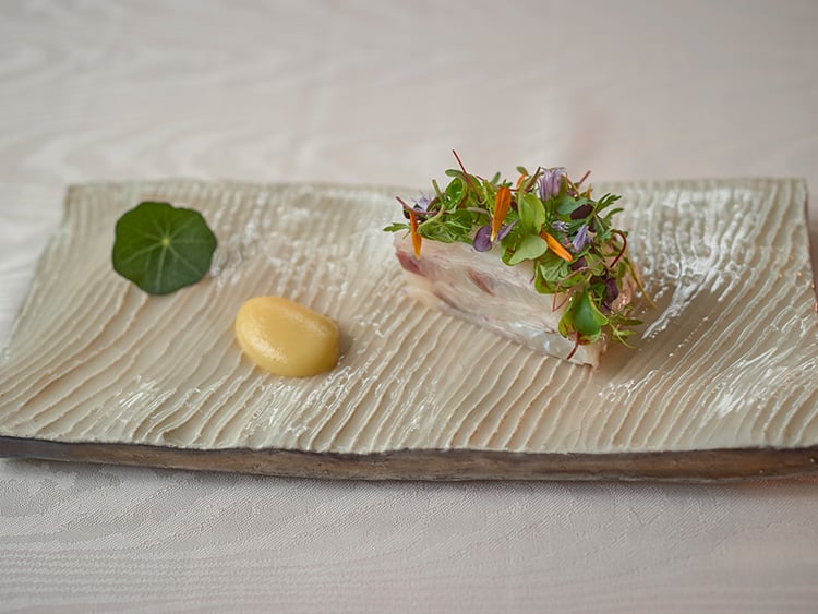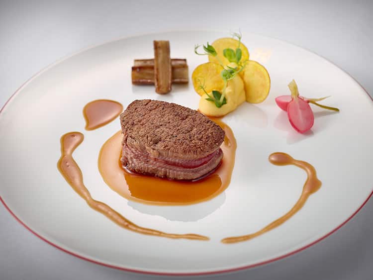 「TRAIN SUITE 四季島」総料理長 斉藤 卓也によるフレンチディナーをお楽しみいただきます。運行開始から築いてきた「TRAIN SUITE 四季島」の料理の伝統や想いを継承しながら、新たな感性を取り入れて、東日本エリアの豊富な食材を使用し丹精込めて創り上げていきます。