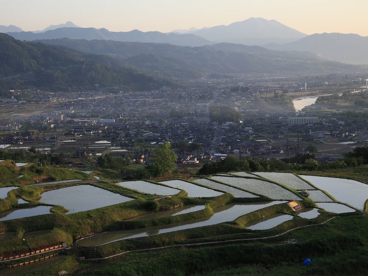 姨捨(おばすて)駅周辺から見下ろす雄大な善光寺平は、かつて肥薩(ひさつ)線矢岳越え、旧根室本線狩勝峠と並び「日本三大車窓」とされ、列車旅では言わずと知れた名所となっています。