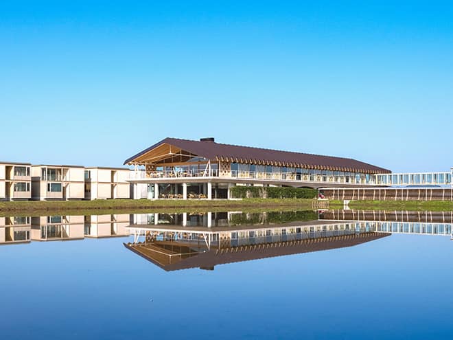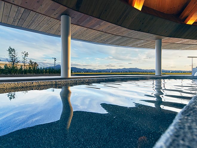 建築家の坂茂氏が設計した木の温もりを感じられるホテル。館内のどこにいても庄内地方の美しい景色を満喫できます。源泉かけ流しの温泉で心身ともにリラックスするひと時を。