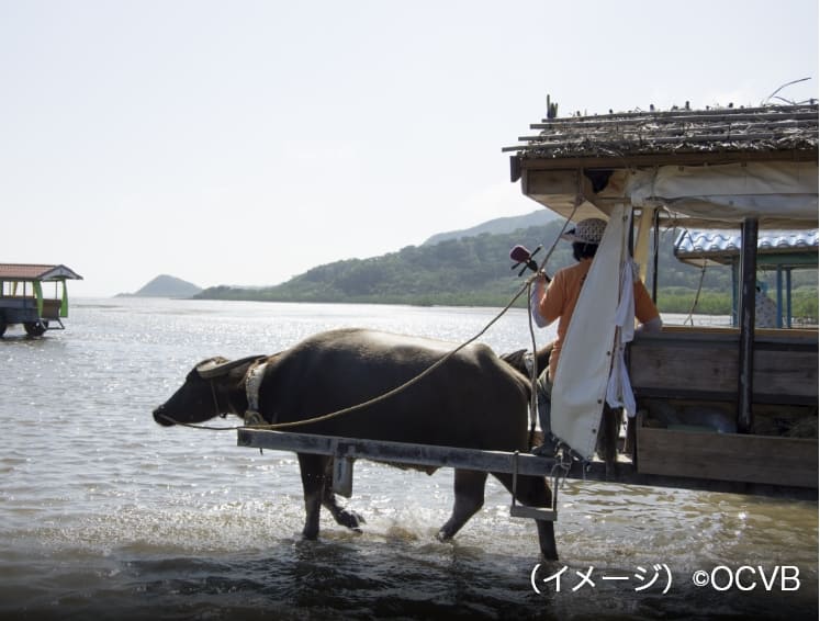 潮風を感じながらのんびりと水牛車に揺られて海を渡ります。