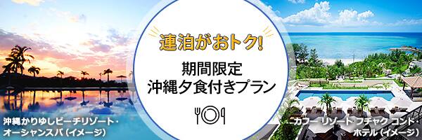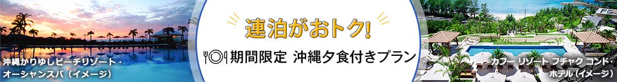 例)1泊目:プラス1美ら海水族館入館券付きプラン、2泊目:琉球村入場券付きプラン