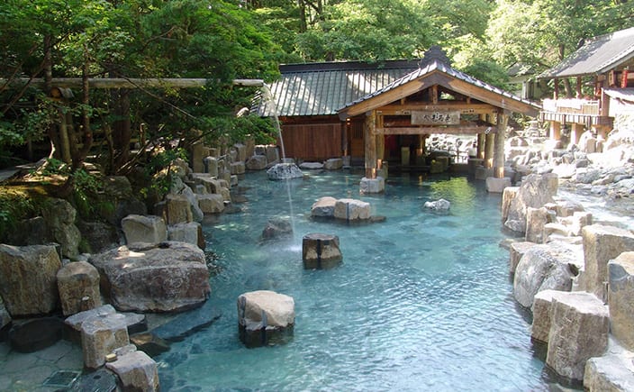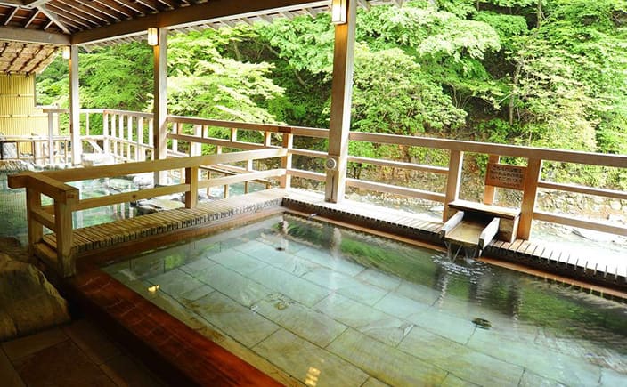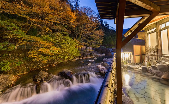 山に囲まれ清流や滝、森や動物、自然と調和したお寺など自然の宝庫の四万温泉は、国民保養温泉地「第一号」に指定されています。昔から「四万(よんまん)の病を癒す」霊泉であるとする伝説が生まれるほど。四万の温泉は飲むと胃腸病に良いとされており、心身ともに癒してくれます。