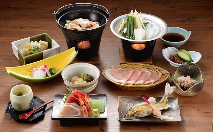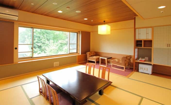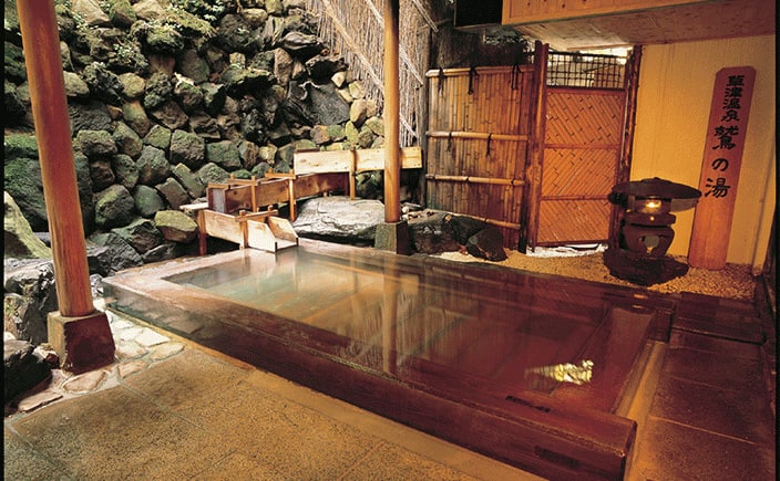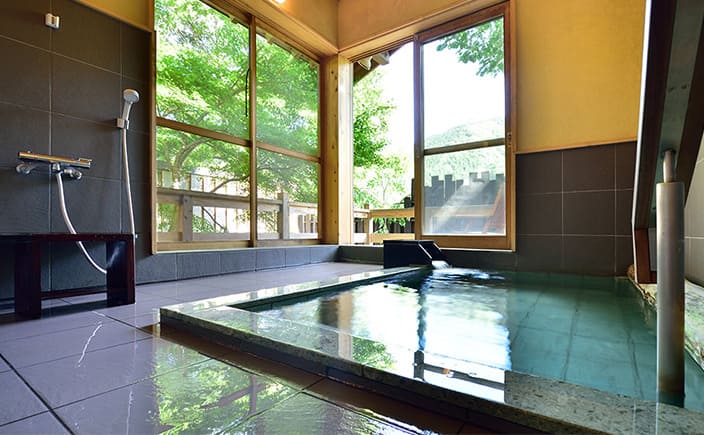 薬効豊かな草津温泉を、かけ流しでゆっくり浸かれる檜の大浴場と露天風呂、ご家族で入れる貸切風呂でお楽しみください。お好みの焼き加減で召し上がれる上州牛ステーキもおすすめです。
