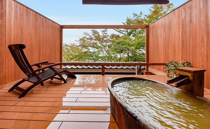 プライベートな空間でお好きなときに何度でも楽しめる露天風呂で、贅沢な時間をお過ごしください。