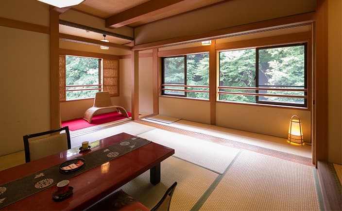 草津の名湯をより贅沢に、よりプライベートに楽しみたい方にオススメの湯宿。全客室温泉の露天風呂付きで優雅な湯浴みや、23種類の多彩な風呂での湯めぐりなど、温泉三昧でお過ごしください。