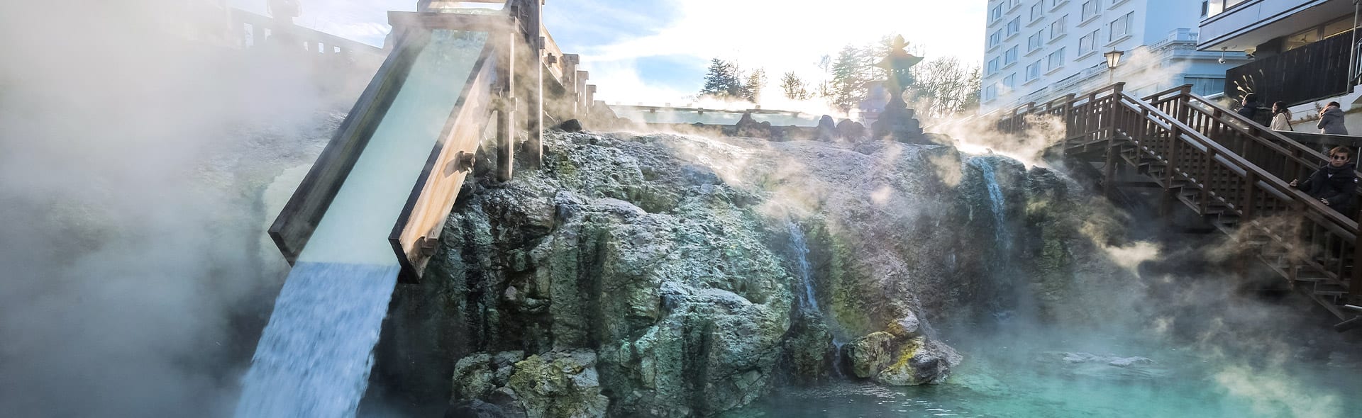 日本三名泉の1つである草津温泉。自然湧出量は日本一を誇り、毎分4,000リットルもの温泉がわき出す湯畑は、まさに草津温泉のシンボル。1日にドラム缶約23万本分もの温泉が湧き出しています。草津の旅館や温泉施設で「源泉かけ流し」ができるのはこのおかげ。"源泉の湯"を心ゆくまでご堪能いただけます。