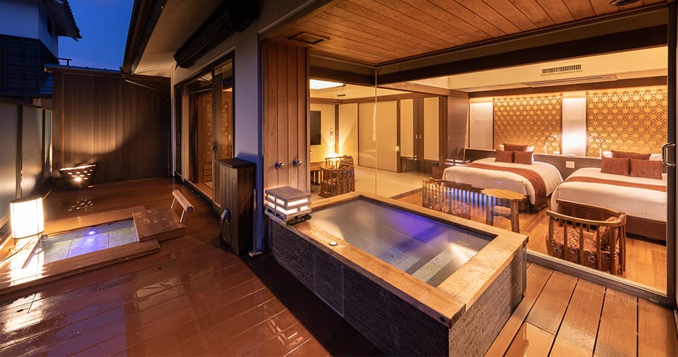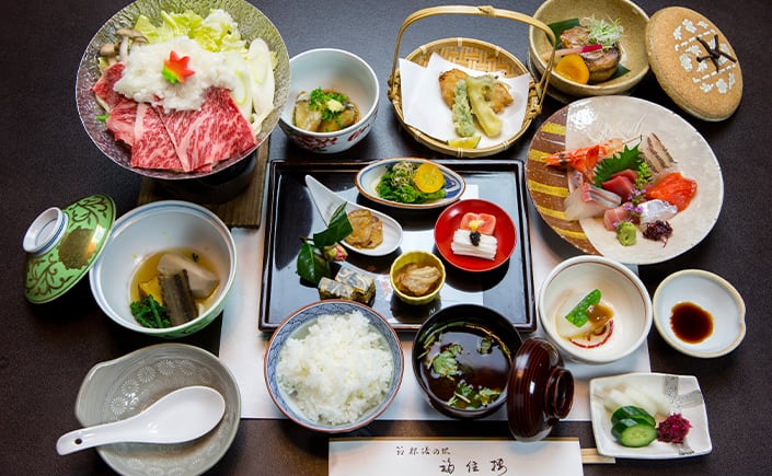 ゆったりと温泉に浸りつつ、美食に舌鼓を打つ。特別な日と、特別な時間のためのホテル。全室源泉掛け流しの温泉を備えた美食宿でお寛ぎください。