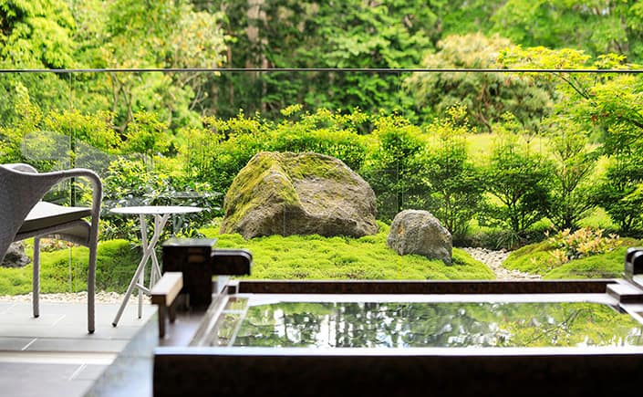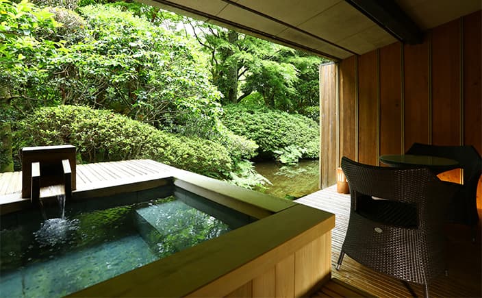 プライベートな空間でお好きなときに何度でも楽しめる露天風呂で、贅沢な時間をお過ごしください。
