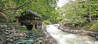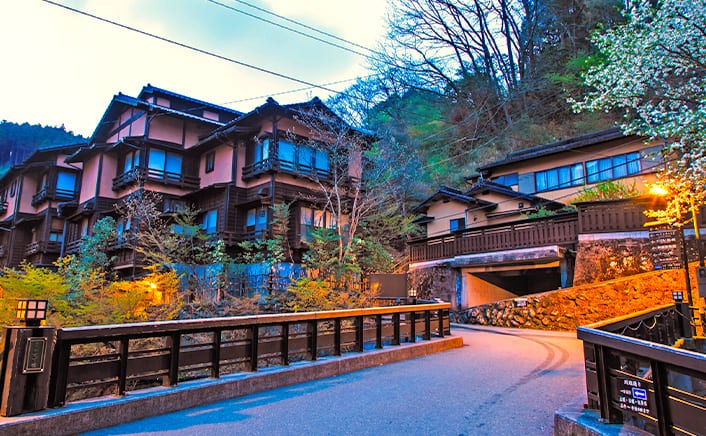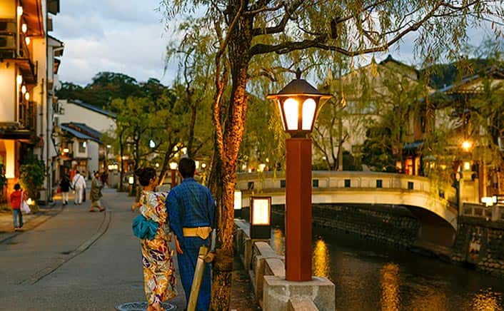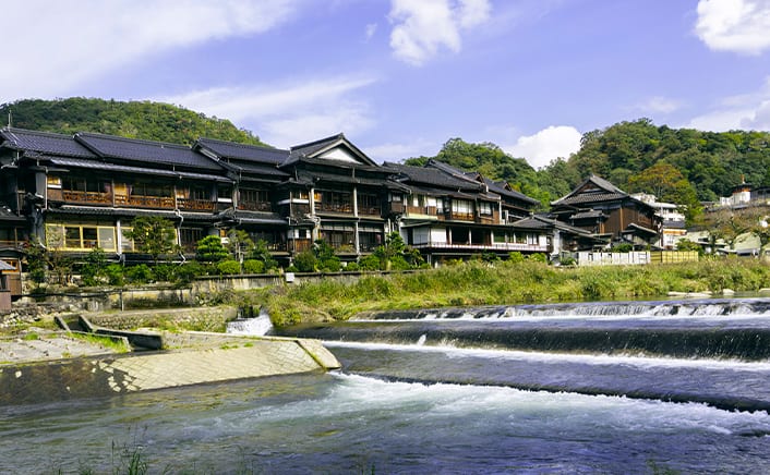 まるで大昔にタイムスリップしたかのようなまち並みを残し、「まち全体が大きな温泉宿」の精神。浴衣のまち・浴衣が当たり前のまちで浴衣を着ながら温泉巡りができます。