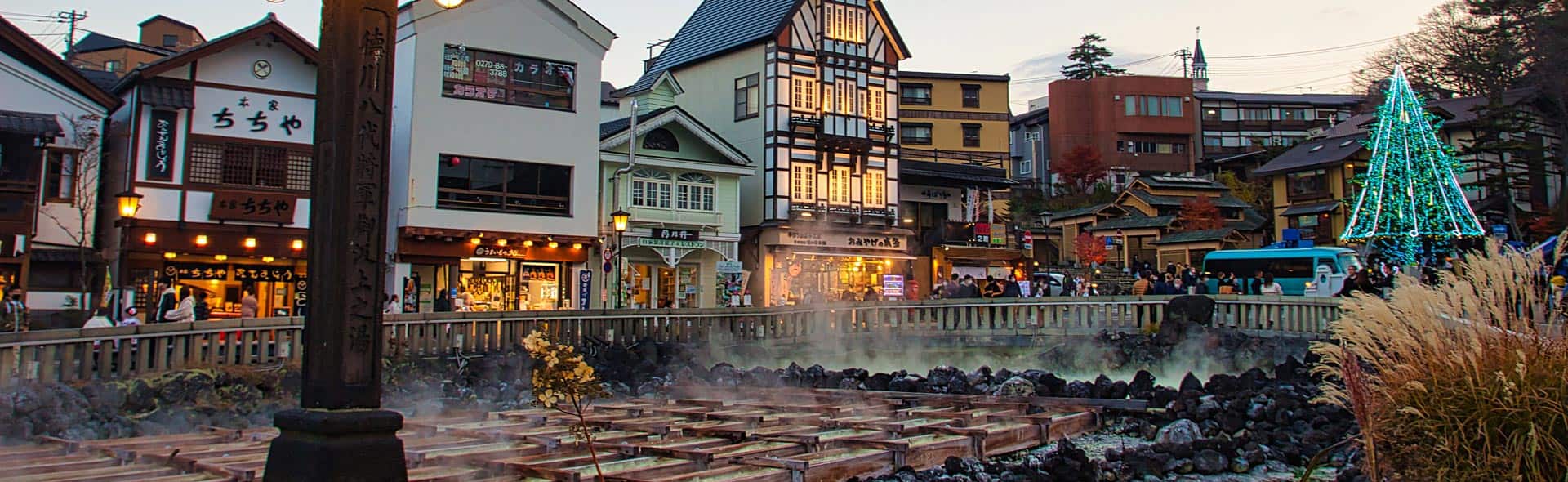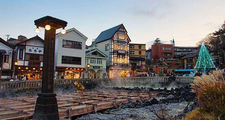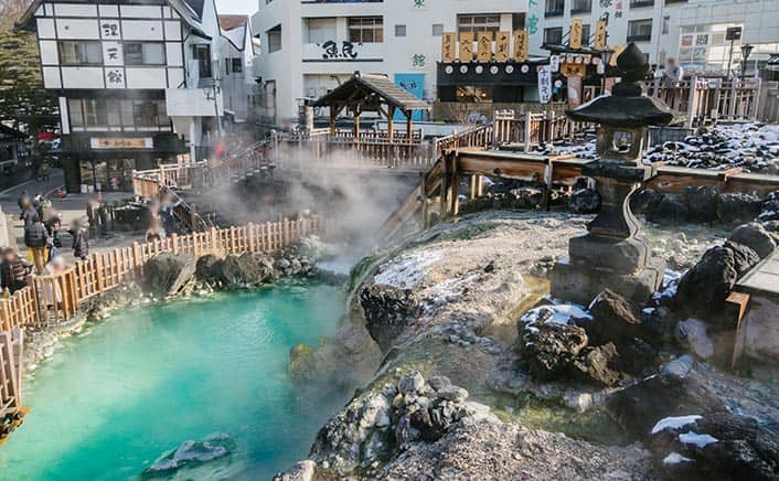自然湧出量日本一で美肌効果も高い抜群の泉質を誇る草津温泉。古くは「恋の病以外ならどんな病気でも治る」と言われたとか。巨大な源泉、湯畑を中心に広がる温泉街で、周囲の広場は芸術家・岡本太郎氏がデザインしました。