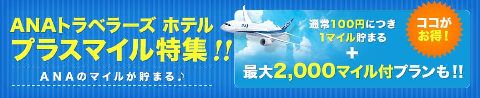 プラスマイルが貯まるおトクなプランのあるホテルをご紹介!もちろん基本マイル(料金100円ごとに1マイル)も貯まります。