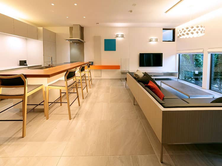 シンプルモダンのデザイン、十勝岳と富良野岳に囲まれ、大自然と各々の四季、道南杉とモダンな家具でごゆっくりご滞在をお楽しみください。