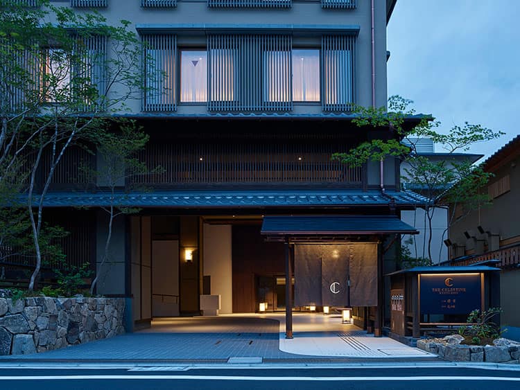 京都・衹園、八坂通り。閉静な土地に佇むホテル。レストランは、天ぷらの名店「八坂圓堂」が出店。唯一無二のひとときをお過ごしください。