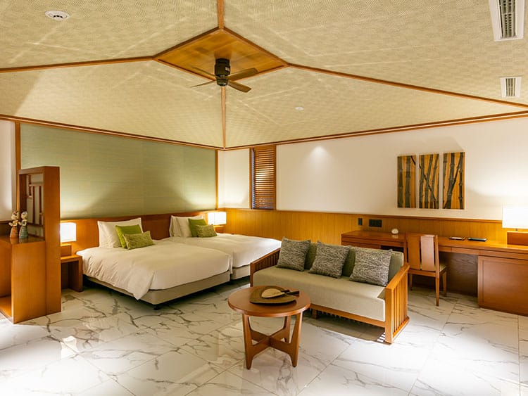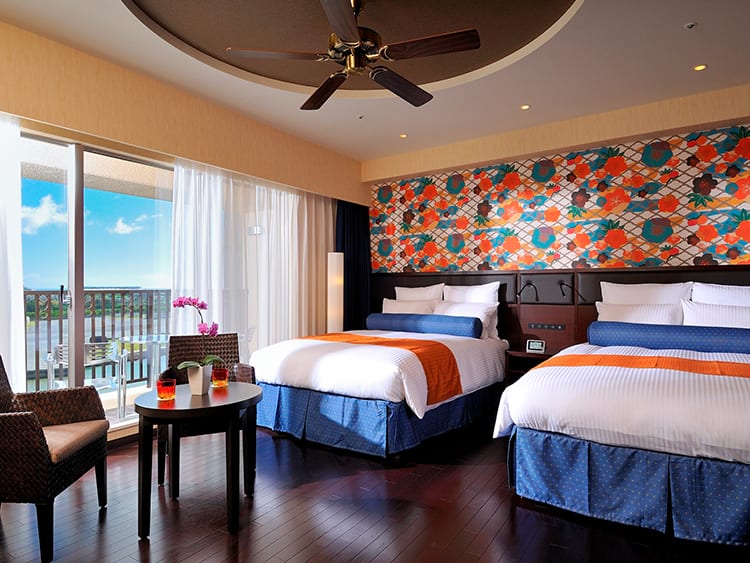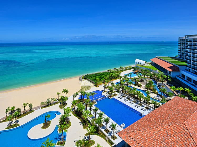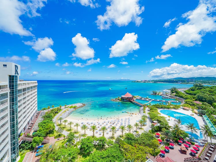 「ハレクラニ沖縄」は360室すべてがオーシャンビューであり、窓の外にはコーラルブルーに輝く海と白砂のビーチが絵画のように広がります。