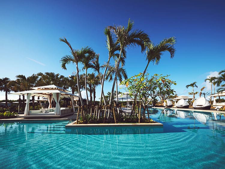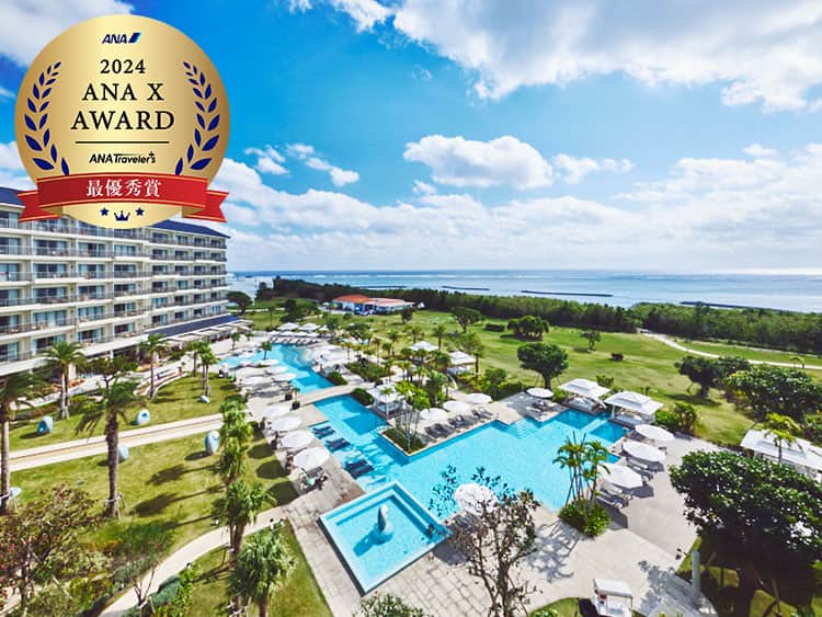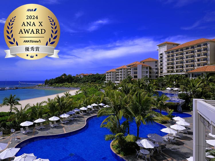 空港から車で約20分に位置するビーチリゾート。沖縄最大級の広さの6種のプールや9種のレストラン&バーなど多彩な施設とサービスで優雅な時間を。