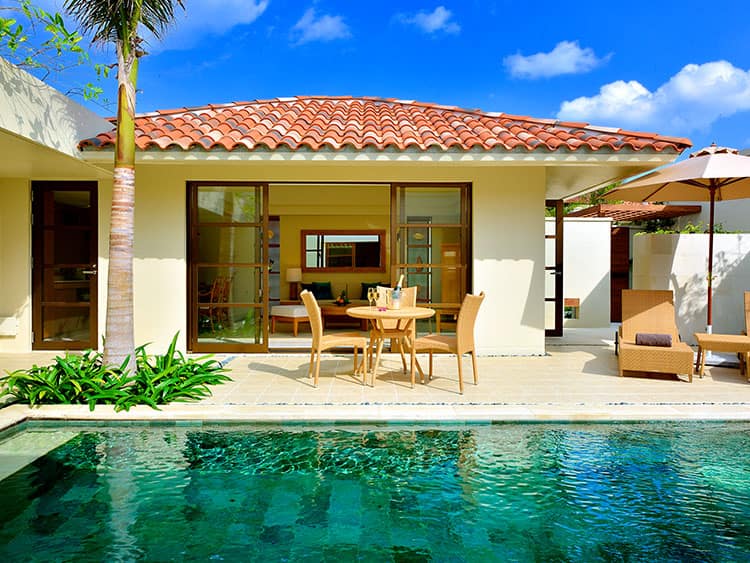 喧噪とかけ離れた全室プール付きのヴィラ、沖縄読谷村で、まるで別荘で過ごすような贅沢な時間をお過ごしください。