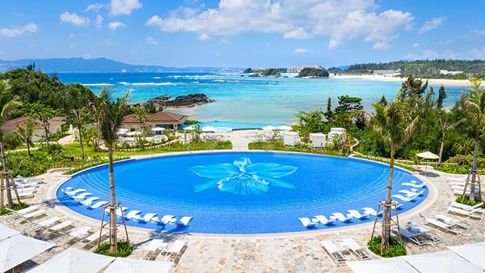 ハレクラニ沖縄は国内屈指の美しいビーチの恩納村(沖縄本島)周辺にあるANA厳選の高級ホテル。客室全てがオーシャンビュー、天然掛け流し温泉のスパ、プールバーが人気。