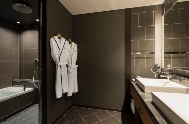 歯ブラシ/カミソリ/タオル(バスタオル)/タオル(フェイスタオル)/ヘアドライヤー/ナイトウェア(大人用・小人用)/加湿器/温水洗浄(全客室)/暖房便座(全客室)/ズボンプレッサー/テレビ/冷蔵庫/トイレ(全客室)/バス(全客室:シャンプーリンスボディーシャンプー)/バスローブ/冷房(全客室)/暖房(全客室)
